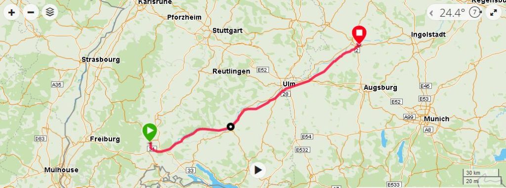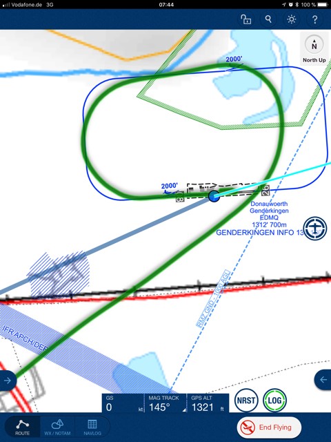 nach Donauwörth, EDMQ, wo wir um 20:15 eine perfekte Landung hinlegen.