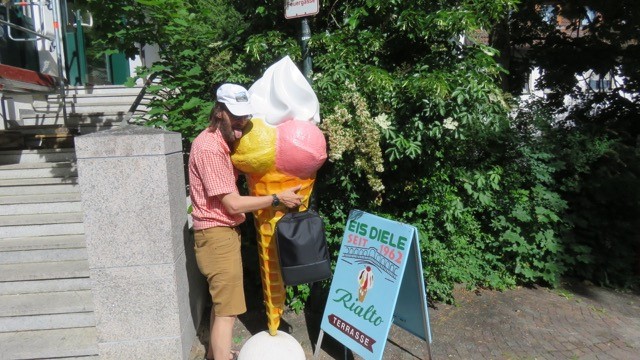 und weil es wirklich heiss ist, gibts noch ein grosses Eis vorm Abflug.