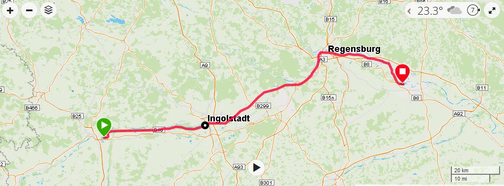 Es geht los zum Mittagessen nach Straubing EDMS, immer entlang der Donau.