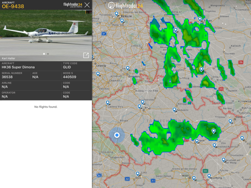 Auf dem Ausschnitt mit der tschechischen Landkarte war gerade eine Schlechtwetterfront